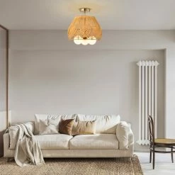 Top 10 โค๏ธ Warehouse Of Tiffany Lucilla 15 Inch Natural Rattan Semi Flush Mount 3-Light ๐