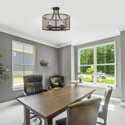 Promo ๐คฉ Warehouse Of Tiffany Adrian Semi-Flush Mount 4-Light Metal Mesh Drum Shade โค๏ธ