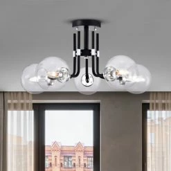 Cheapest 🎁 Warehouse Of Tiffany Laruda Semi Flush Mount Ceiling Light Modern-Sputnik Style Matte Black And Silver Finish 5-Light – N/A 🎁