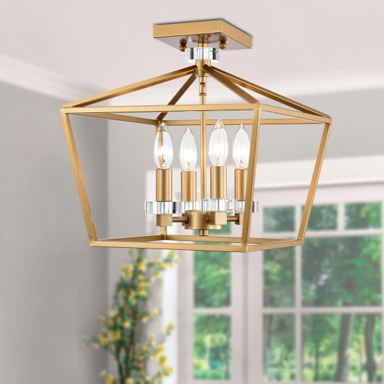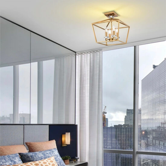 The cage style of this Semi-Flushmounted Ceiling Lamp will transform any sterile space. Bold protruding angles create wonderful light patterns. Great illumination with a mixed modern and traditional design. All natural materials. Easy assembly.