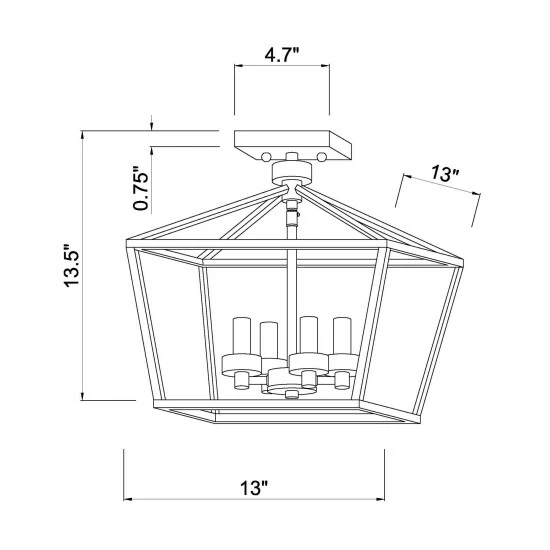 - Fixture: L 13 x W 13 x H 13.5 inches