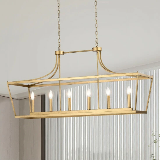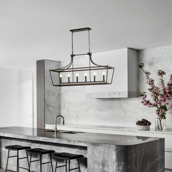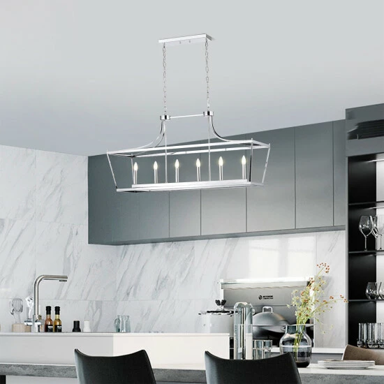 This fixture will be a centerpiece wherever you place it in your home. Meant to impress, this design has eye appeal with its cascading upper lines with opposing straight cross beams in the lower housing. Six light linear candelabra chandelier in various available finishes. An opulent piece. Plenty of illumination.