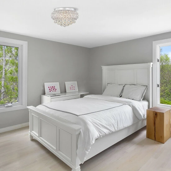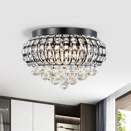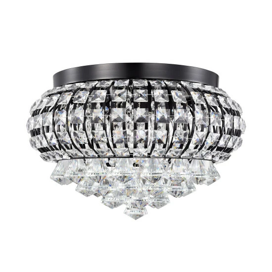 Add some elegant sophisticated lighting with this decadent, shimmering flush mount chandelier over your living room or dining room table. The four-light design ensures ample illumination, while the crystal-covered shade amps up the sparkle factor in your space.