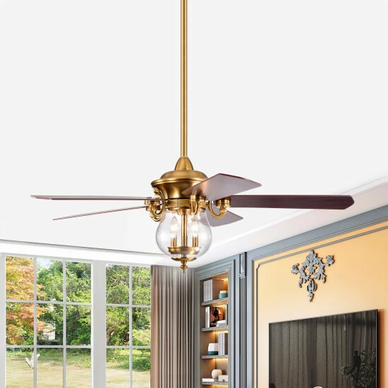 This mid-century modern ceiling fan is guaranteed to keep you cool and comfortable in summer. This charming style proves its timeless appeal with the candle’s light, this antique brass finish ceiling fan is an art piece a must-have in your house.ย
