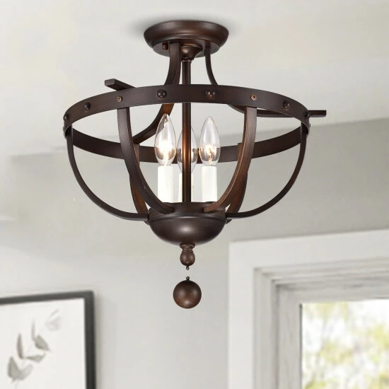 Bring class and elegance to your home with this Bopelo semi-flush ceiling lamp. The durable metal frame has a brushed dark bronze finish for industrial flair, and the caged bowl design has an open look that doesn’t interfere with the multidirectional lighting from the three bulbs (not included).