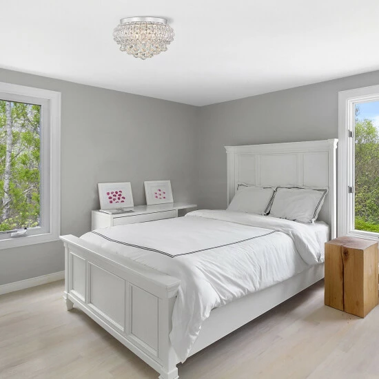Add some elegant sophisticated lighting with this decadent, shimmering flush mount chandelier over your living room or dining room table. With optional silver or matte black finish, this flush-mount treasure will scatter light elegantly around the room through its dazzling crystal design. The four-light design ensures ample illumination.