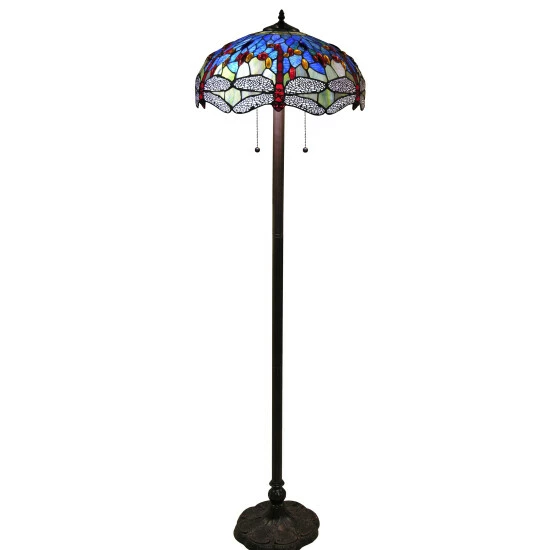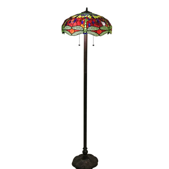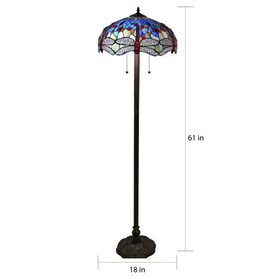 Style your traditional space with the Hailey floor lamp. The bronze-finished metal frame is paired with a hand-cut stained glass shade, detailed with a dragonfly design. Choose from three colors to complement your classic decor.