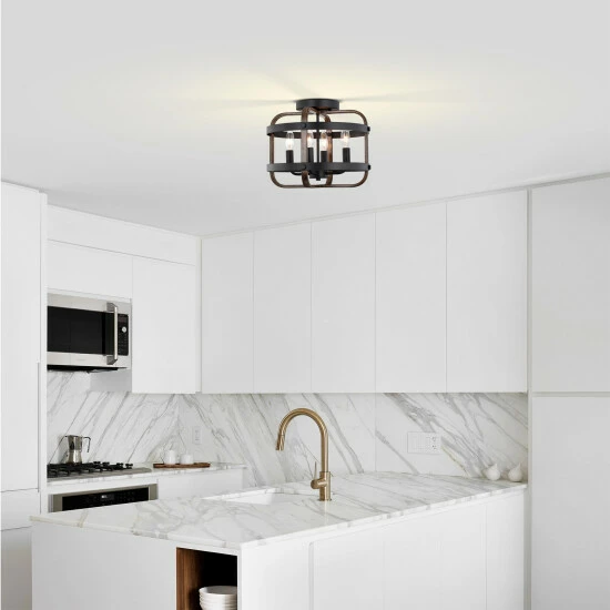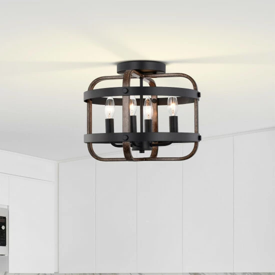 Industrial metal combines with a wood grain, and streamlined physique, this flush mount features a two-toned finish in matte black and wood grain, adding a dash of an industrial also farmhouse vibe to your space.