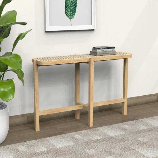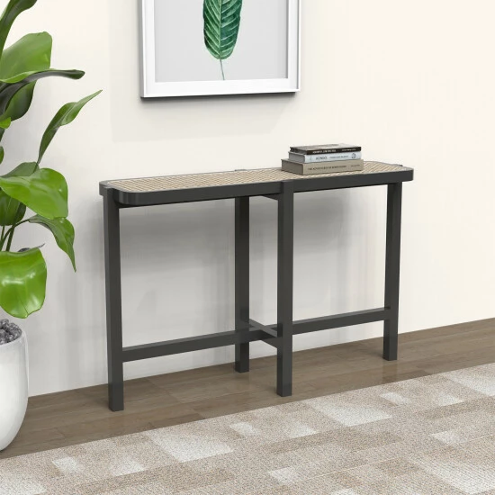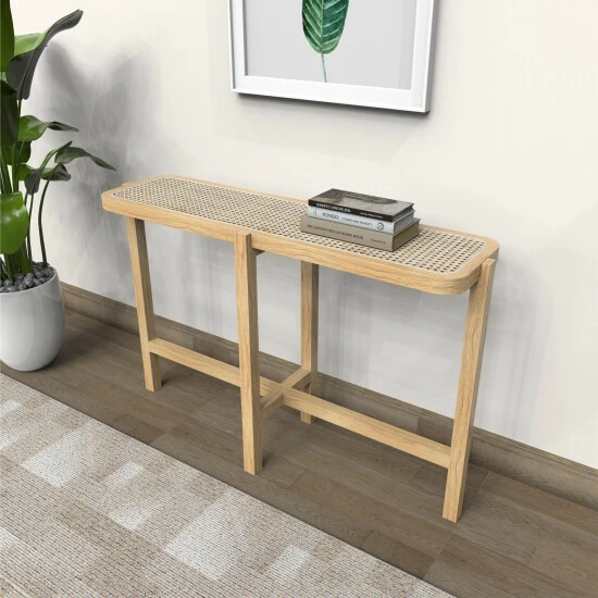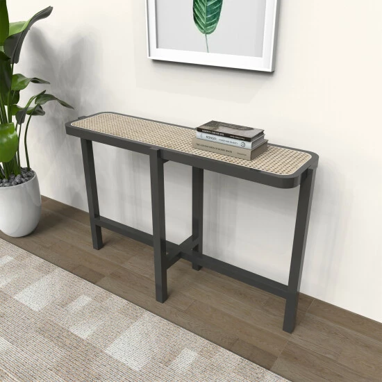 The Marsie features a solid wood base and frame with a sturdy rattan table surface. Your choice of finishes is available for the perfect match to your living space. Console tables are great for providing a decorative platform while saving valuable space.