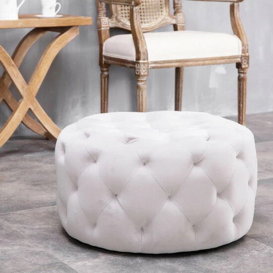 Add some style to your living area with this Warehouse of Tiffany ottoman. Upholstered in velvet fabric and finished with tufted diamond detailing, this piece looks sophisticated in any modern space. The generous padding enables it to work as a table, footrest, or an extra seat.