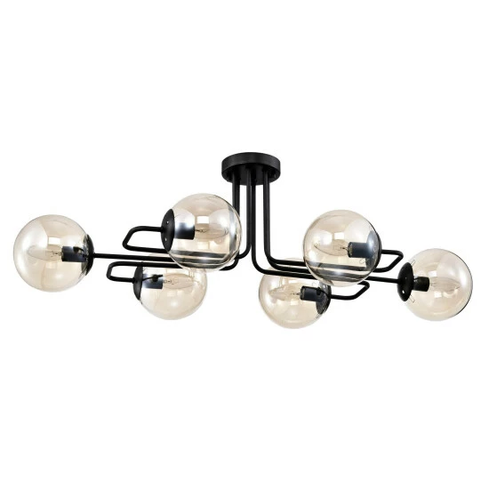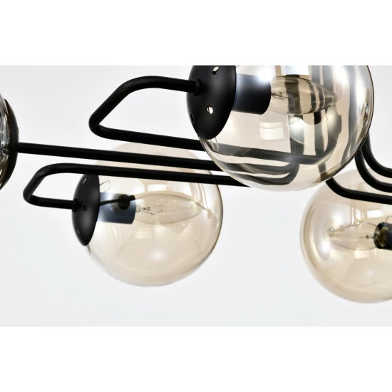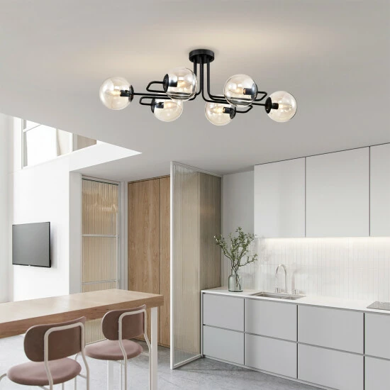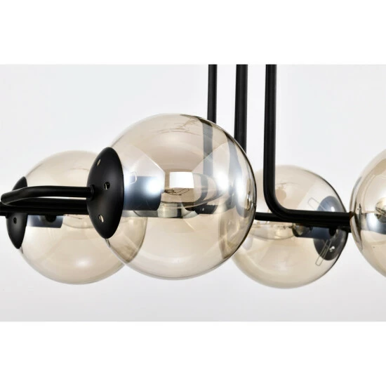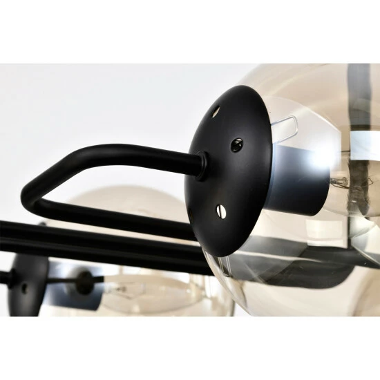 This 6-light vanity light has a matte black finish and elegant, sculptural lines designed to draw the eye. It hangs from a circular canopy and fixed-height downrod. This vanity light has exposed metal hardware that contrasts the clear glass globe shade for a crisp. Each of the clear glass globe shades, an LED-compatible bulb (not include).