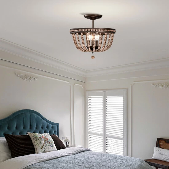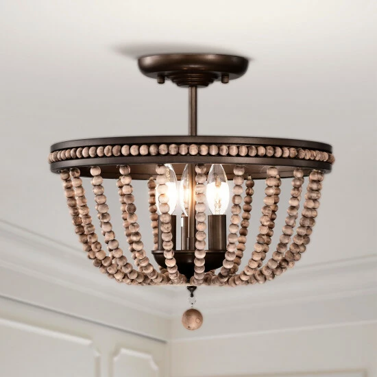 This empire chandelier is the perfect blend of island and vintage bohemian vibes with a versatile look that complements almost anything. It’s accented with beads and bronze metal and features an openwork design. The bead ball detail down below is a fun touch that takes the charm to the next level. This semi flushmount chandelier is perfect looks over a dining room table, but it’s also ideal for welcoming guests in the entryway or adding an unexpected element to the living room.