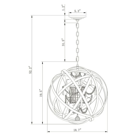 This orb chandelier with one (1) light bulb and can give the required lighting to your simple home. It can also add this item as your attention seeker fixture because of the unique design and the circular motion surrounded to the main small empire design inside of it. The said item is matte gold finished with an adjustable hang length.