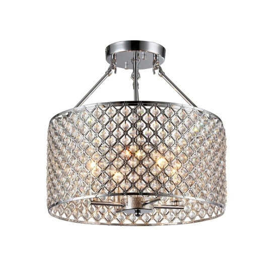 Accent your contemporary or traditional decor with this Yasmin crystal semi-flush fixture. A classic round design and brilliant crystal mingles with chrome finish in a lattice pattern making this crystal semi-flush fixture a wonderful blend of classic and modern styles. Four lights behind the crystal shade provide ample lighting for a variety of spaces, and the semi-flush mount looks great on high and low ceilings alike.